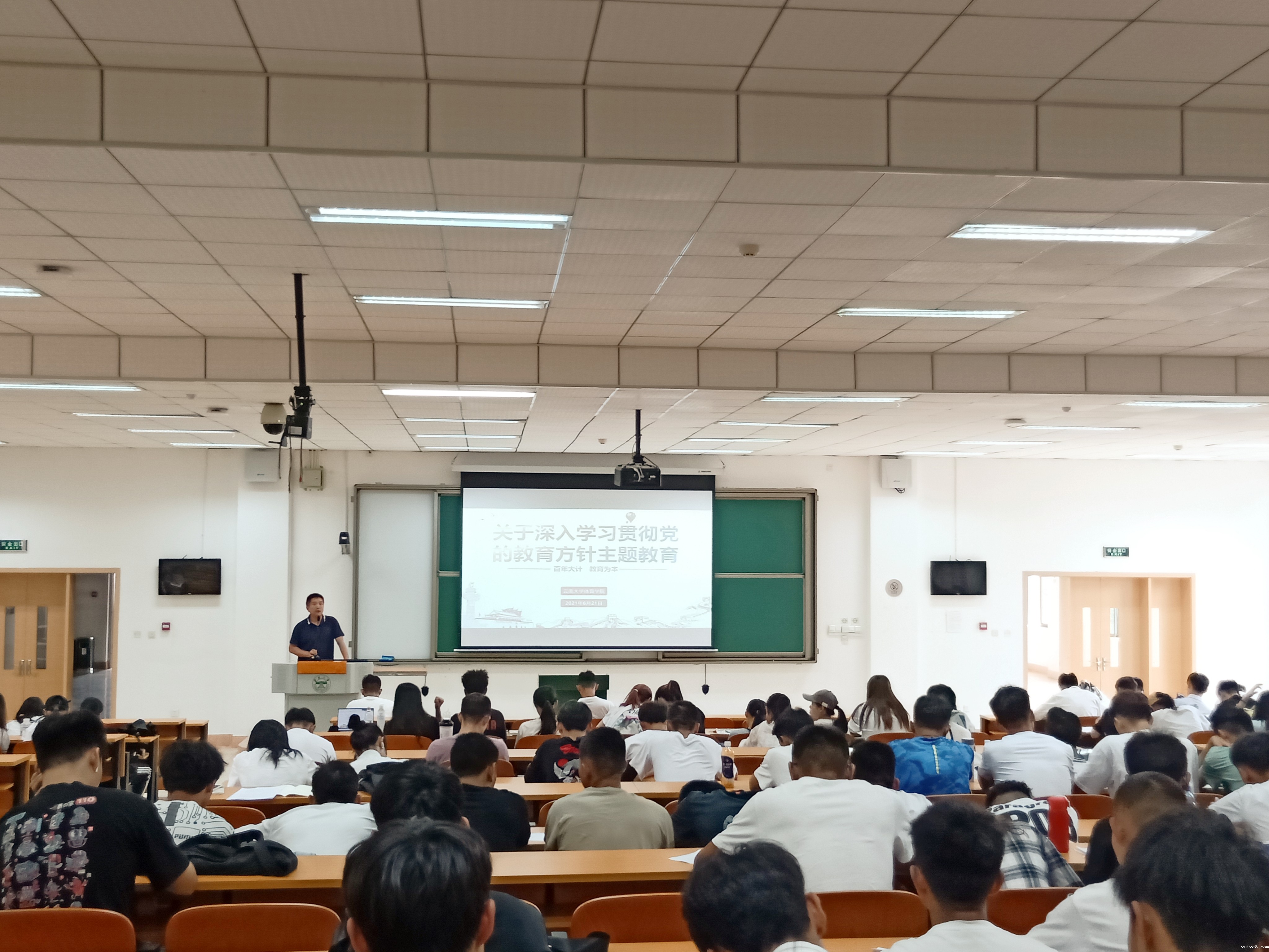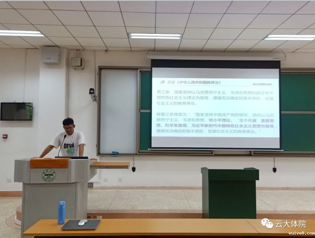 近日,为贯彻中央教育工作领导小组印发《关于深入学习宣传贯彻党的教育方针的通知》。伟德官网下载苹果手机版于6月21日中午在文汇楼2118室召开学习贯彻党的教育方针主题教育会议。体育学院党委副书记阳忻老师;院团委书记、专职辅导员刘正之老师、本科生兼职辅导员李兆能老师及全院学生参加会议。